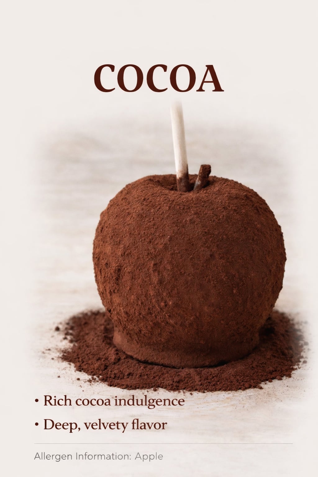 美味しいりんご飴に、男性や子供に人気のココアパウダーをふんだんにトッピングしました。その見た目は華やかで、手に取るだけでワクワク感が広がります。